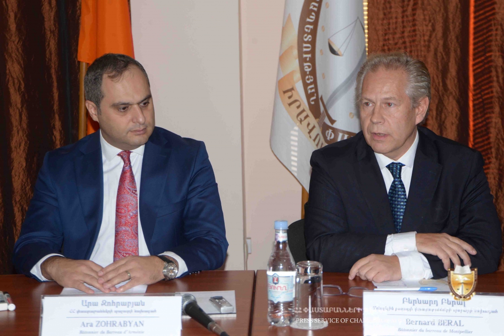 The Chairman of the Chamber of Advocates of RA Ara Zohrabyan welcomed the guests at the Chamber of Advocates. He noted that he remembers warmly his visit to Montpellier where many issues, relating to advocacy and law, were discussed. “We consider France as our friend and the most active relations on the level of international cooperation are exactly with France. Even the model of the School of Advocates of Armenia is based on the French model,” mentioned Ara Zohrabyan.